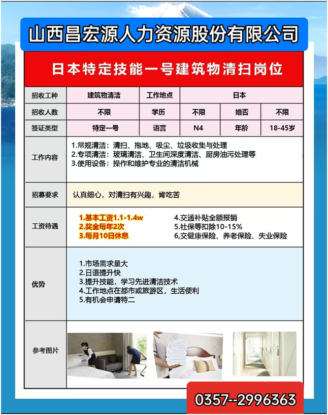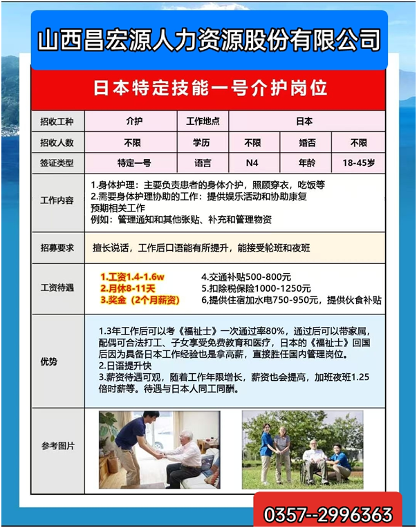想通過(guò)赴日工作漲薪,卻卡在3個(gè)問(wèn)題:① 怕日語(yǔ)不好找不到工作 ② 擔(dān)心公司不正規(guī)被騙 ③ 不知道自己適合哪種簽證……”以上問(wèn)題不要擔(dān)心山西昌宏源人力資源股份有限公司順應(yīng)臨汾市市場(chǎng)需求,為赴日、德就業(yè)人員提供專(zhuān)屬服務(wù)啦!↓↓↓